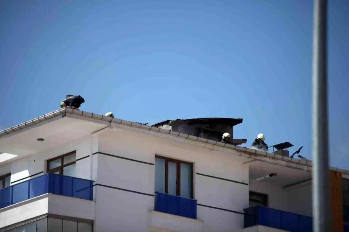 Konya’nın Karatay ilçesinde 5 katlı binanın çatısında çıkan yangın, paniğe neden oldu.