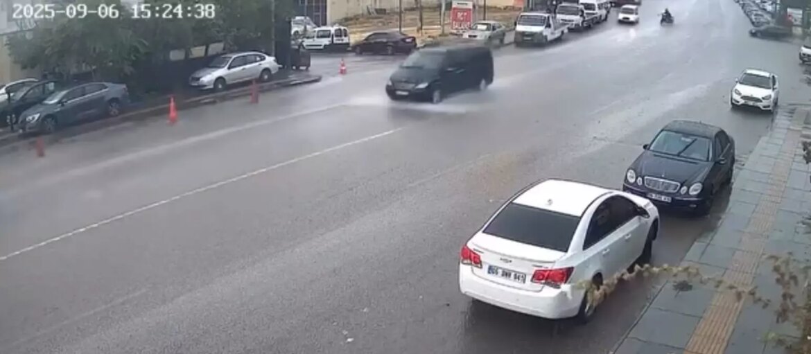 Ankara‘da yağmurun tesiriyle kayganlaşan yollar şoförlere sıkıntı anlar yaşattı. Yenimahalle ilçesi İvedik Organize Sanayi Bölgesi’nde yokuş aşağı ilerleyen motosiklet, kayarak devrildi. Motosiklet ve şoförü metrelerce sürüklenirken şoför kazayı talih yapıtı yara almadan atlattı. O anlar güvenlik kamerasına yansıdı.